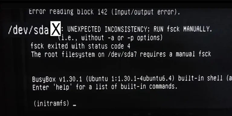 Enter 'help' for a list of built-in commands. To repair the filesystem in the corrupted partition using fsck command like below: (initramfs) fsck /dev/sdaX -y